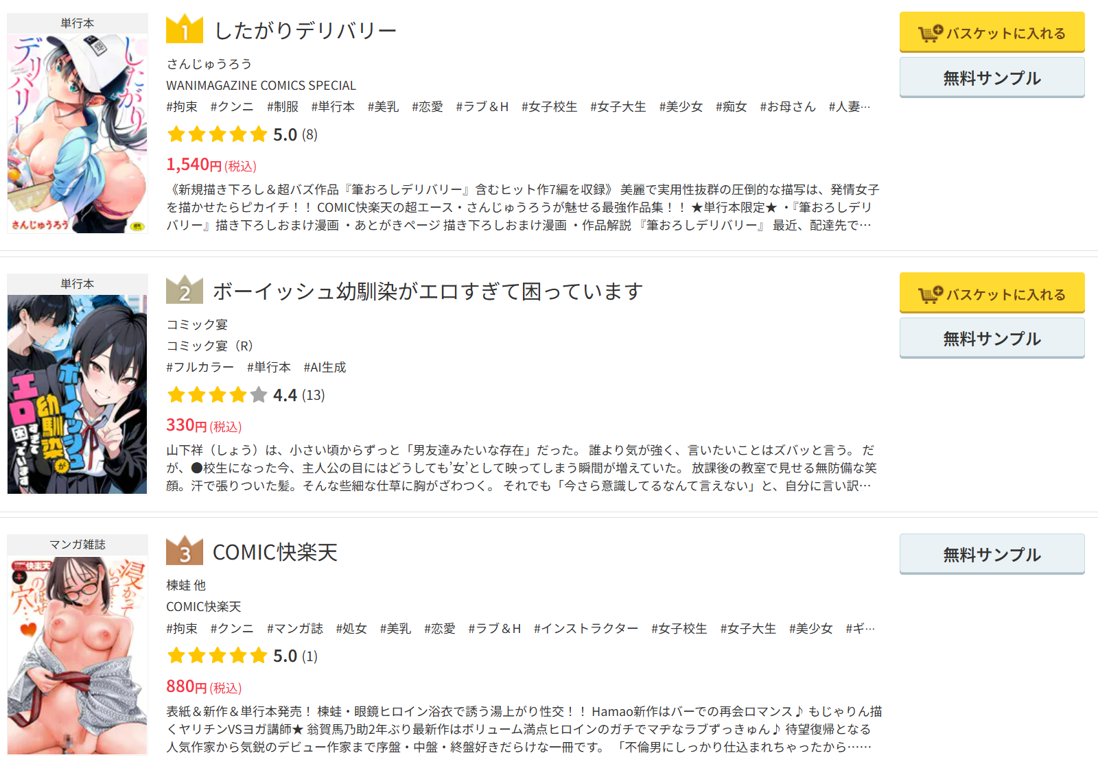 そこで最近になって進出したのがFANZAブックスなのではないでしょうか。同人作品は除外検索できますが、FANZAブックスは現状、ごった煮なのです。
