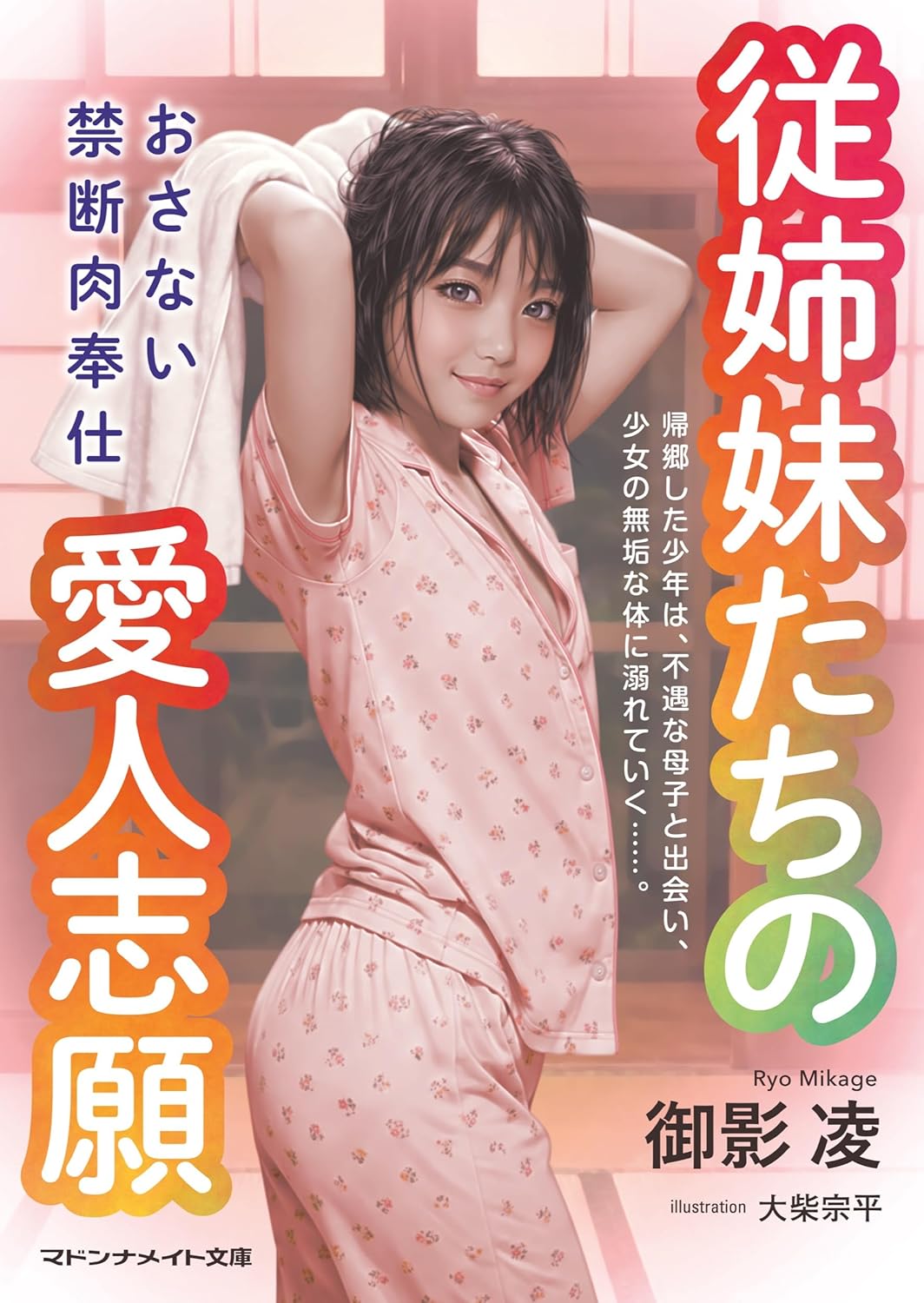 【新着記事】 【オトナ文庫】巨乳ヤンキーはボク専用マゾオナホ彼女... 【FANZA】同人マンガ 週間1位「オタクの僕が一... 【FANZA】官能小説 週間1位「清楚な女子学生を... ANGEL倶楽部 2026年5月号(表紙:よもぎ豆... 【フランス書院eブックス】エッチできるVRMMOで... 【フランス書院eブックス】勇者だけど、最後に泊まっ... 2026年4月10日 【マドンナメイト】従姉妹たちの愛人志願 おさない禁断肉奉仕(御影凌) ホーム二見書房マドンナメイト 新刊紹介官能小説二見書房マドンナメイト タグ大柴宗平御影凌 Copy URLX 保存解除 FANZA 帰郷した少年は、不遇な母子と出会い、少女の願いを聞き、幼い体に溺れていく……。 啓一郎は故郷で遠縁に当たる母娘、芳江と佳津美に出会う。ある日、風邪を引いた啓一郎を看病するため、あろうことか佳津美は身体を使って奉仕しだした。次第に熱のこもった奉仕に溺れ、禁断の関係に溺れていく。上京後、啓一郎は従姉の喜久子とも淫らな関係に堕ち……。 著者御影凌表紙大柴宗平発行日2026/04/10 【タグ検索】:御影凌, 大柴宗平 日間ランキング 人気ランキング 官能小説・エロラノベ ノクターン作家の書籍化 更新日: 2026年4月11日 シェア Copy URLX ‐PR‐ 武家女当主アヤメの受難 ~刀と愛と助平小僧から離れられない体~ ‐PR‐片翼のシノーペ ‐PR‐紅蓮四奏ピュアエレメンツ キーワード検索 タグ大柴宗平御影凌 三紋昨夏のレビュー マンガ 【I’m moralist】「精隷牢獄リェグ~奇形魔物との自慰交尾に伴う破滅願望~」最底辺の魔物と交尾! 異種姦出産孕ませ マンガ 【レビュー】山田シグ魔「触烙」 筋肉ムキムキ女戦士がショタの触手で掘り尽くされる マンガ 【石ケンピ】同い年身長差カップルのイチャラブ漫画「バレー部の大きい彼女と小さい彼氏」 マンガ 【laliberte】母親NTR「マザリー」 真面目な女教師が不良に寝取られ、息子を捨てた母親は妊娠を懇願する マンガ 【レビュー】はるこん「破魔の巫女 淫獄に堕つ 2」 姉妹の救出に向かった母親が敗北凌辱、戦うヒロインの良作! 新着記事 月刊メガストア 月刊メガストア2026年5月号(ベコ太郎) 男の娘・れくしょんッ!S Web男の娘・れくしょんッ!S Vol.116(表紙:御家かえる) ANGEL倶楽部 ANGEL倶楽部 2026年5月号(表紙:よもぎ豆太郎) LQ LQ Vol.068(表紙:玉乃井ぺろめくり) 竹書房ラブロマン文庫 【竹書房ラブロマン文庫】僕のセフレは美熟女上司(桜井真琴) ブログ 【雑記】咳き込む日々(・д・) ゴホゴホッ‼ ランキング 【FANZA】官能小説 週間1位「清楚な女子学生を毎日二人っきりの電車の中で開発していく話【フルカラー挿絵付】」(2026年4月11日) ランキング 【FANZA】エロ漫画 週間1位「N県T市R村の風習について」(2026年4月11日) ランキング 【FANZA】同人マンガ 週間1位「オタクの僕が一軍ギャルと付き合えるまでの話3」(2026年4月11日) ランキング 【DLsite】同人マンガ 週間1位「青水庵&白金庵コンプリートBOX!! 2008~2026」(2026年4月11日) ランキング 【DLsite】エロ漫画 週間1位「あたしのワレメはなんセンチ?」(2026年4月11日) ランキング 【DLsite】同人ゲーム 週間1位「存在感薄い妹との簡単生活」(2026年4月11日) ‐PR‐ コトネイロ 人気記事 最新日週雑誌小説レビュー
