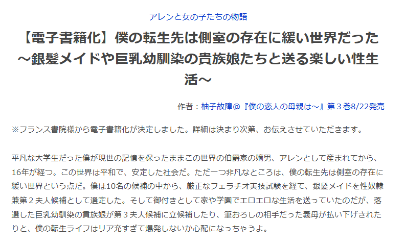 思い出が多いのは『僕の転生先は側室の存在に緩い世界だった』です。